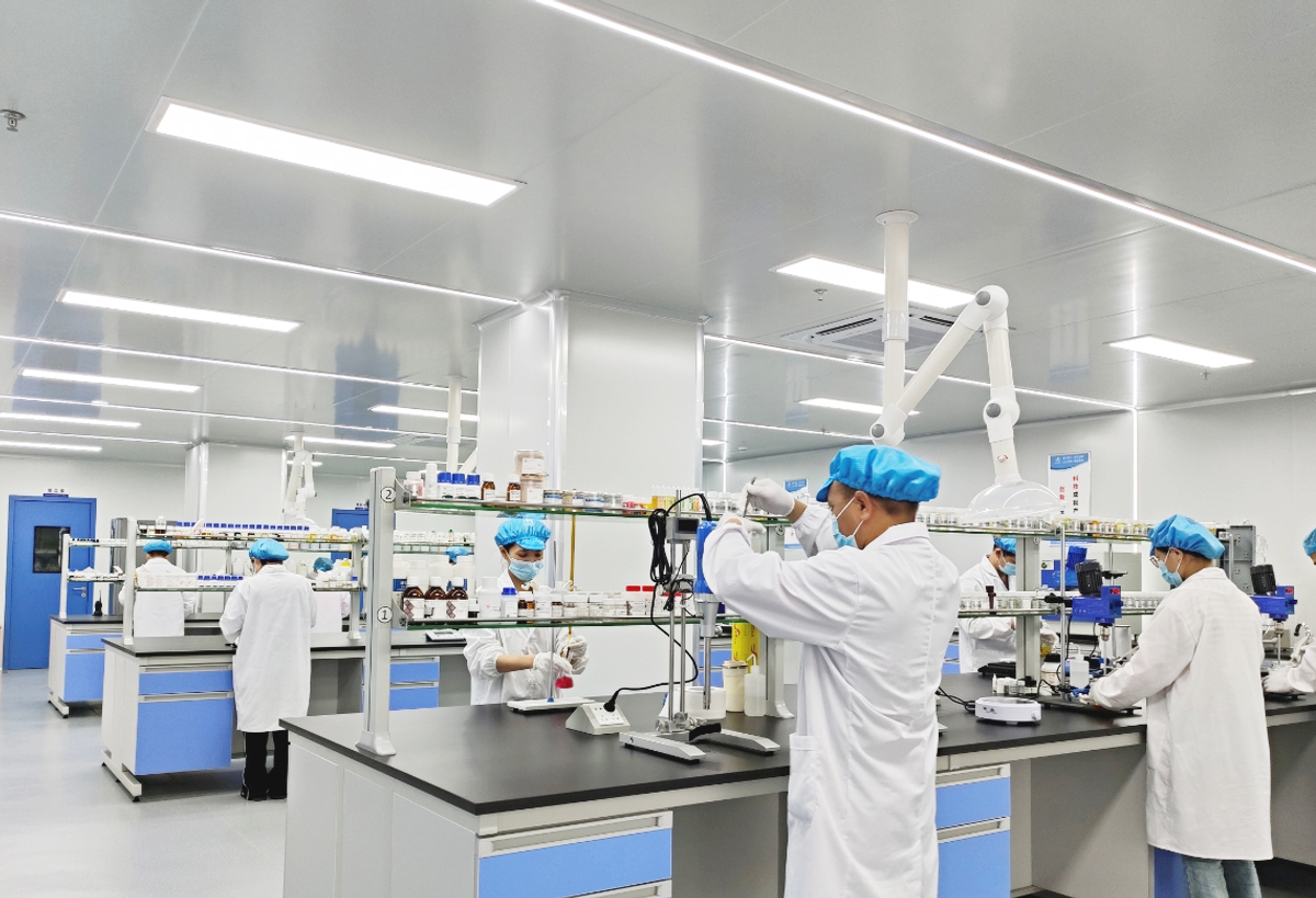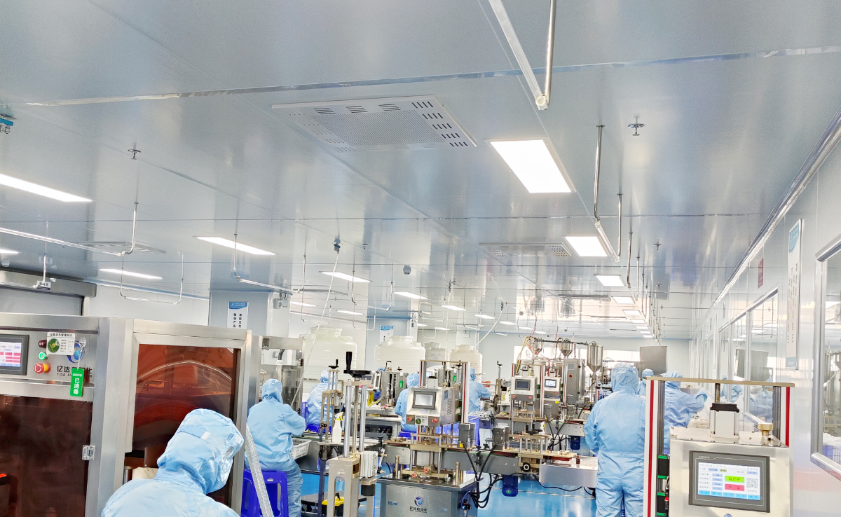 10万级GMP标准:严格按照GMP标准建设,达到10万级洁净度卫生标准,且现代化全参观式开放设计,直观体验高标准生产过程