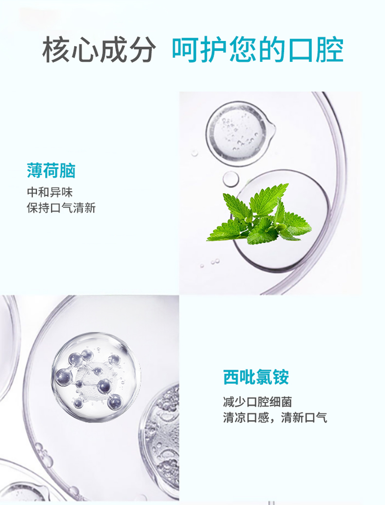 高效清洁口腔,温和不刺激,持久清新,便携瓶装设计。